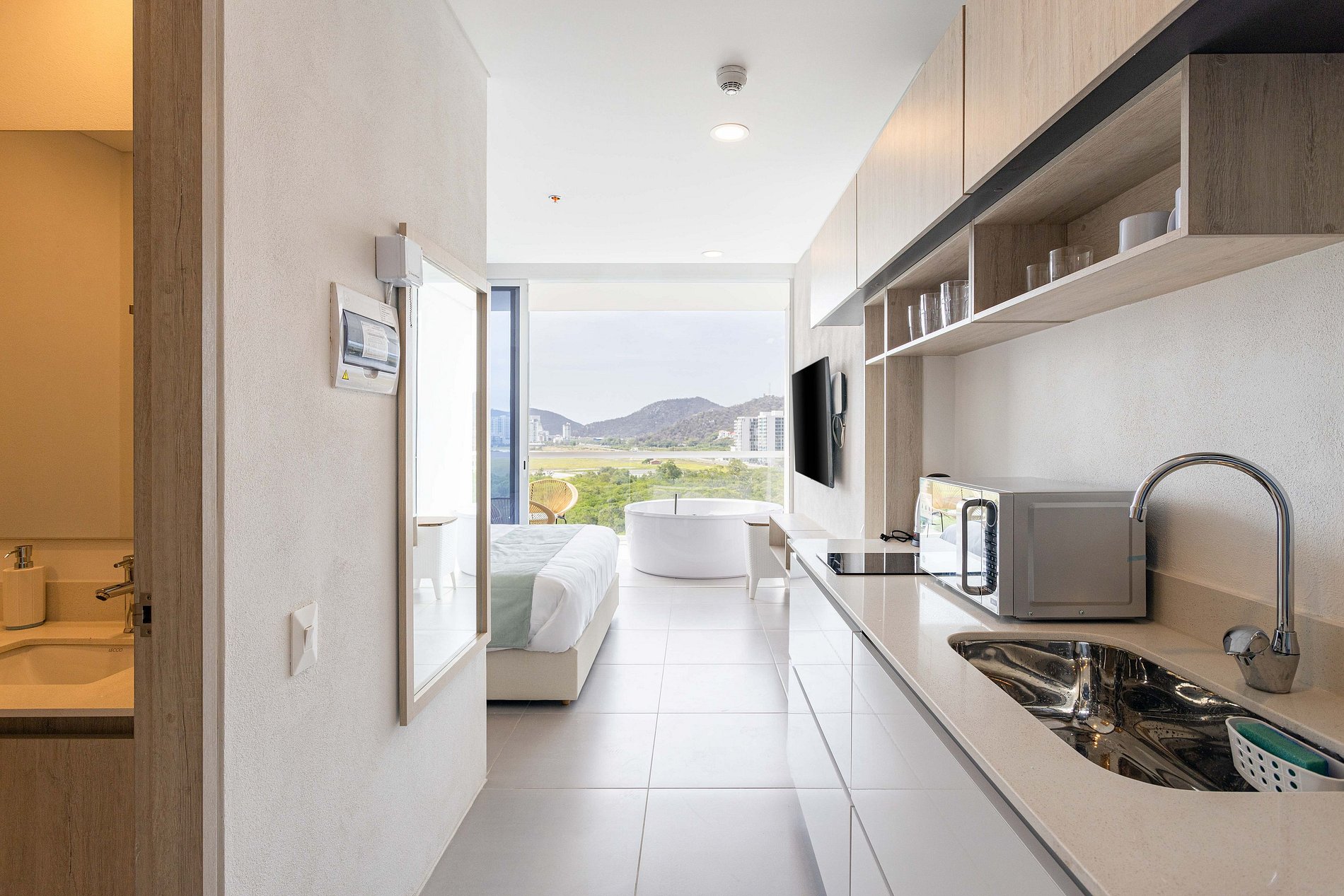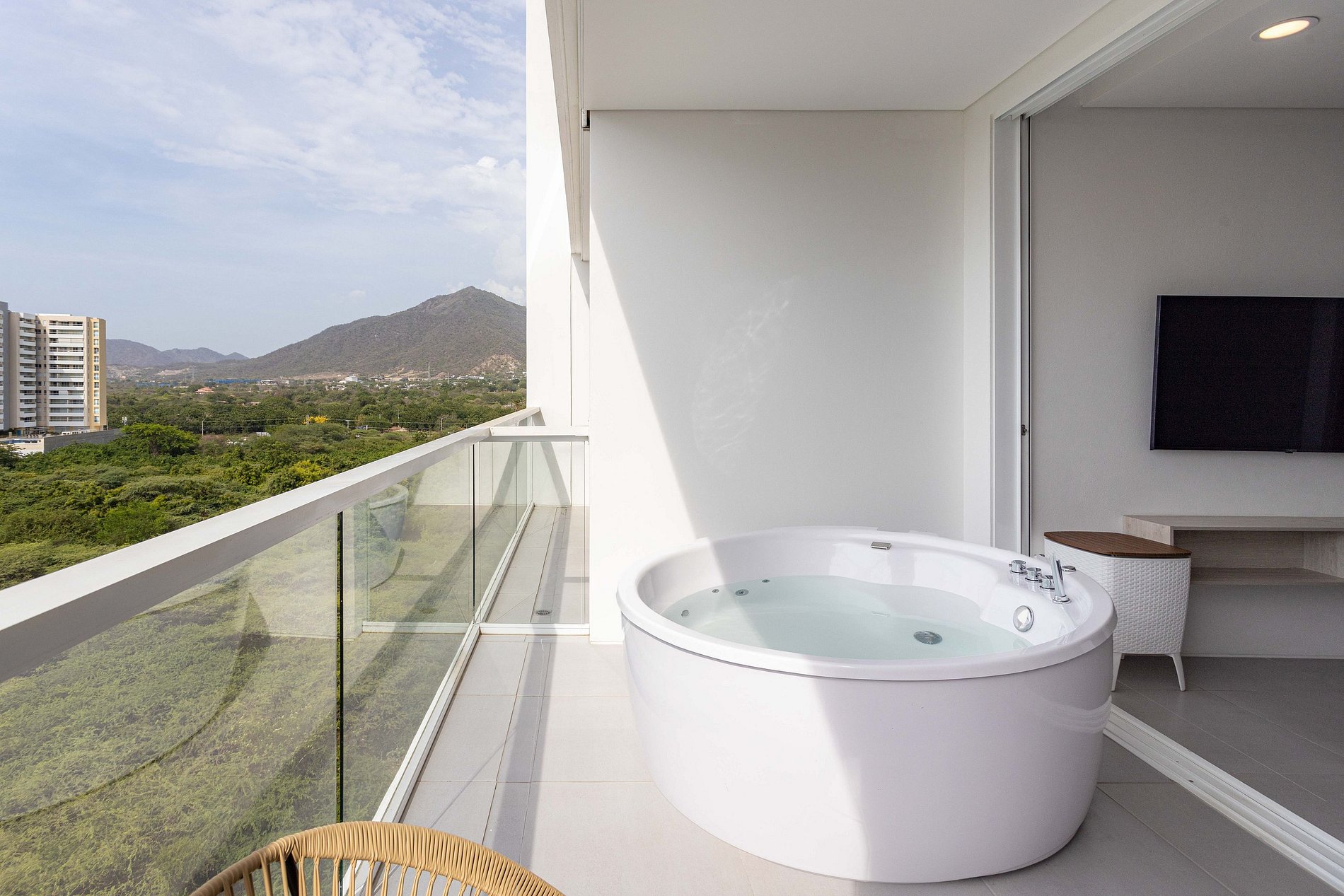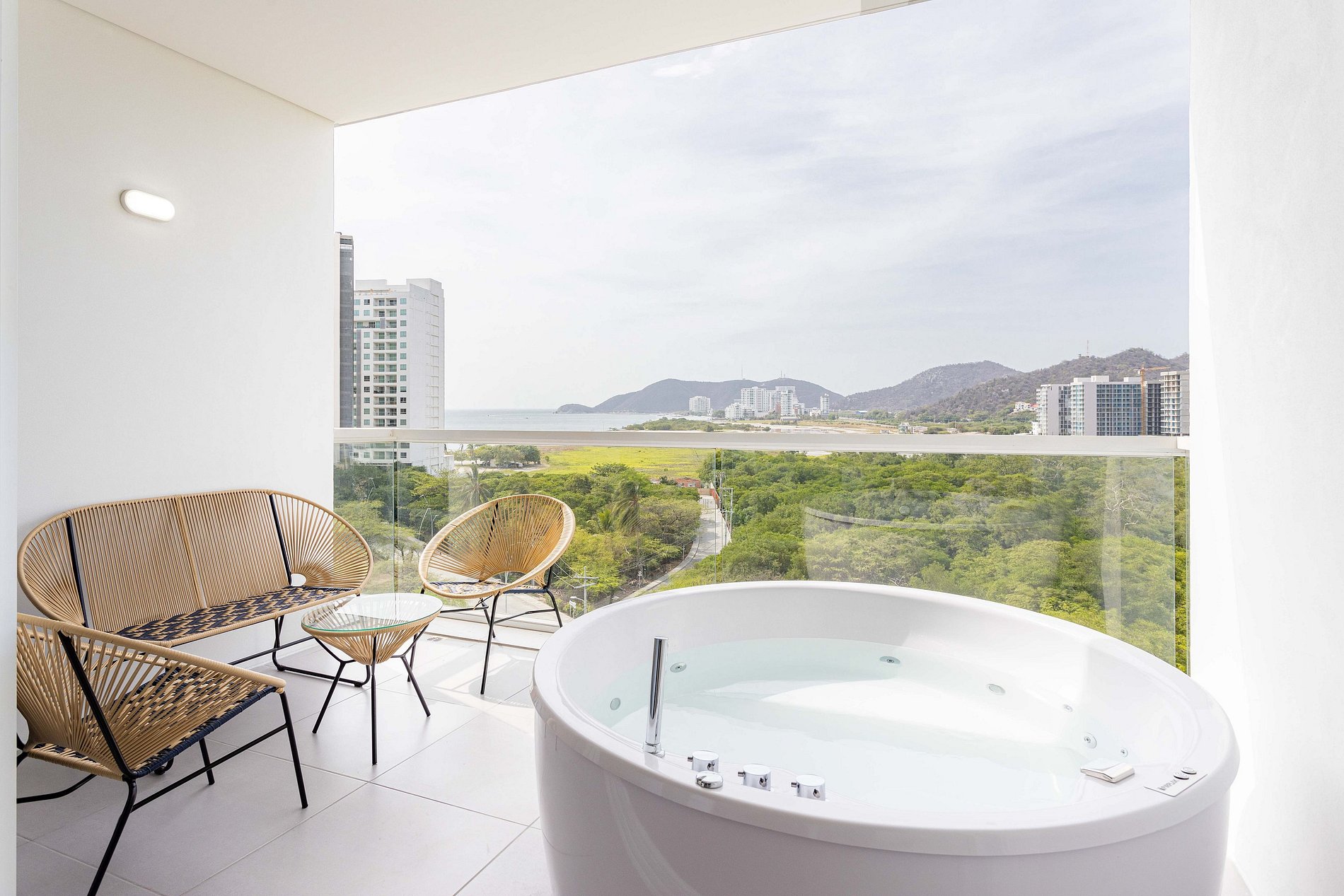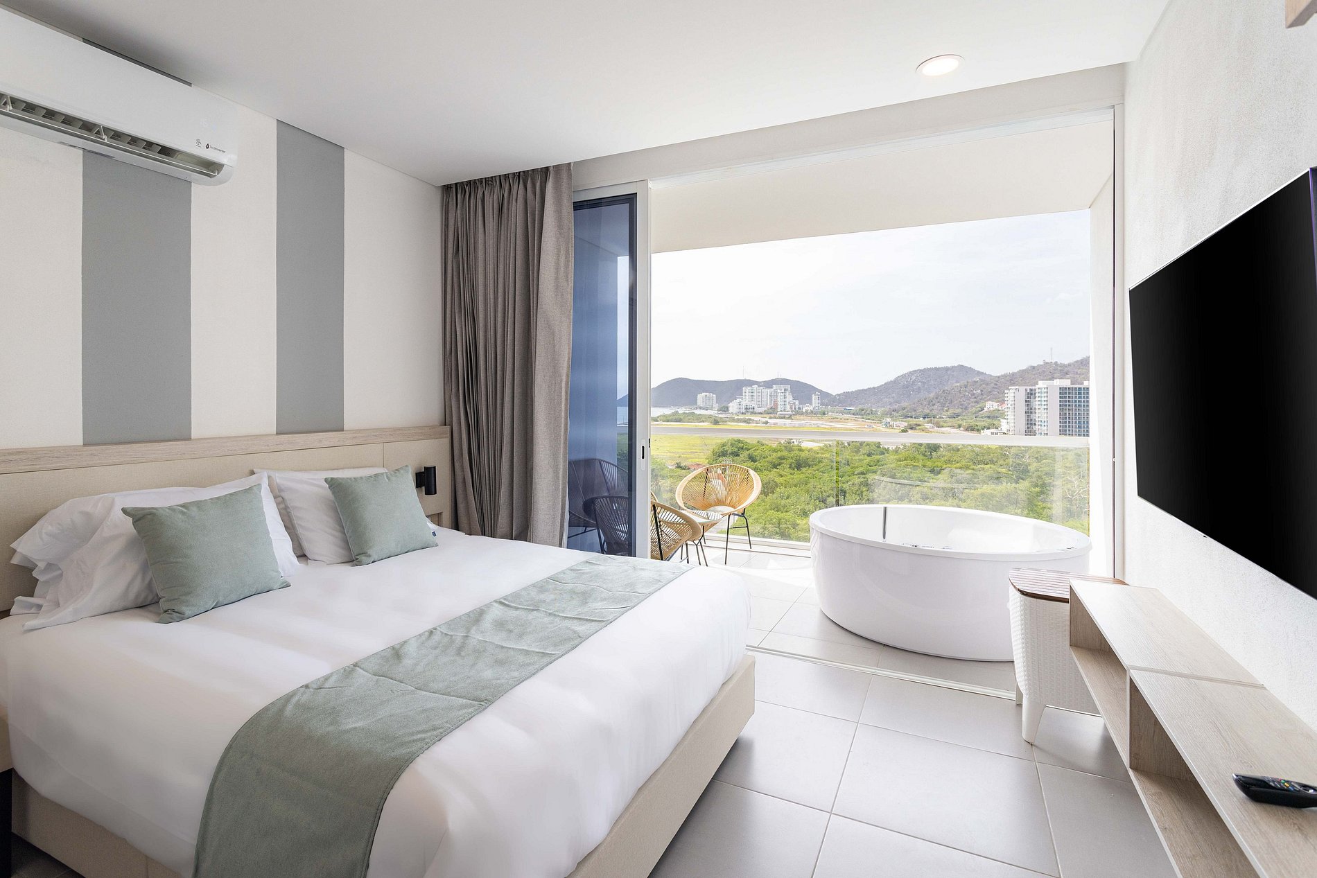 Relájate en esta escapada única y tranquila, disfruta del sol y las mejores playas de santa marta, hermosa vista acompañado de una fresca y elegante suite.