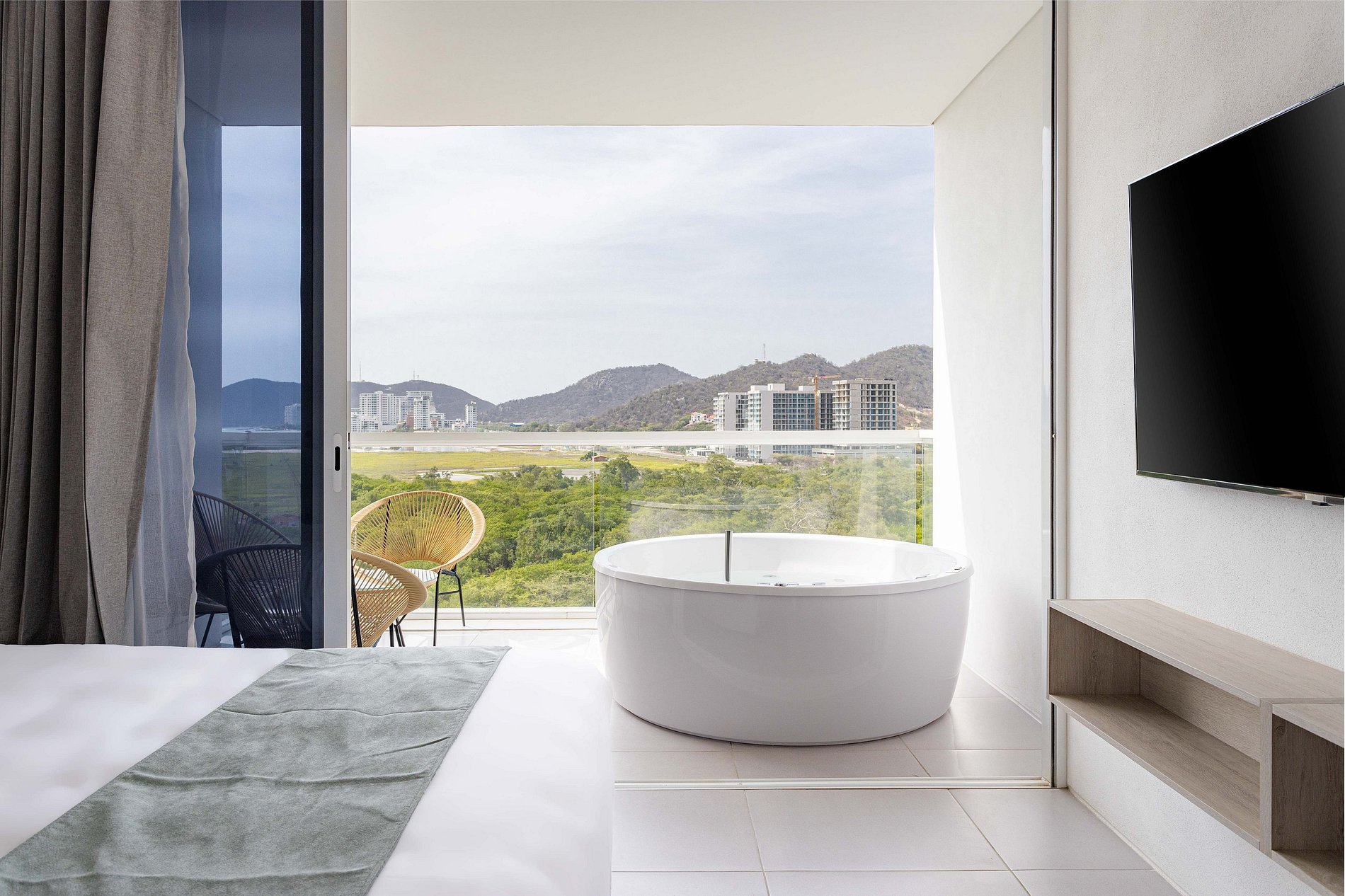 Relájate en esta escapada única y tranquila, disfruta del sol y las mejores playas de santa marta, hermosa vista acompañado de una fresca y elegante suite.