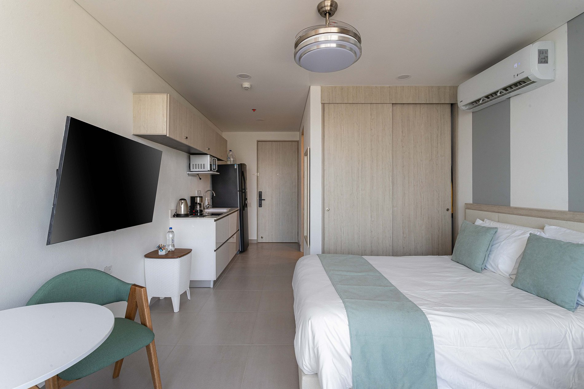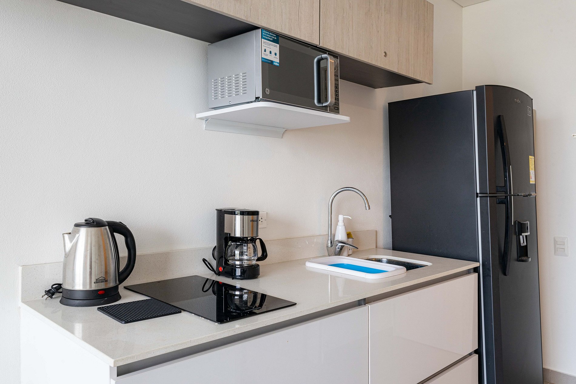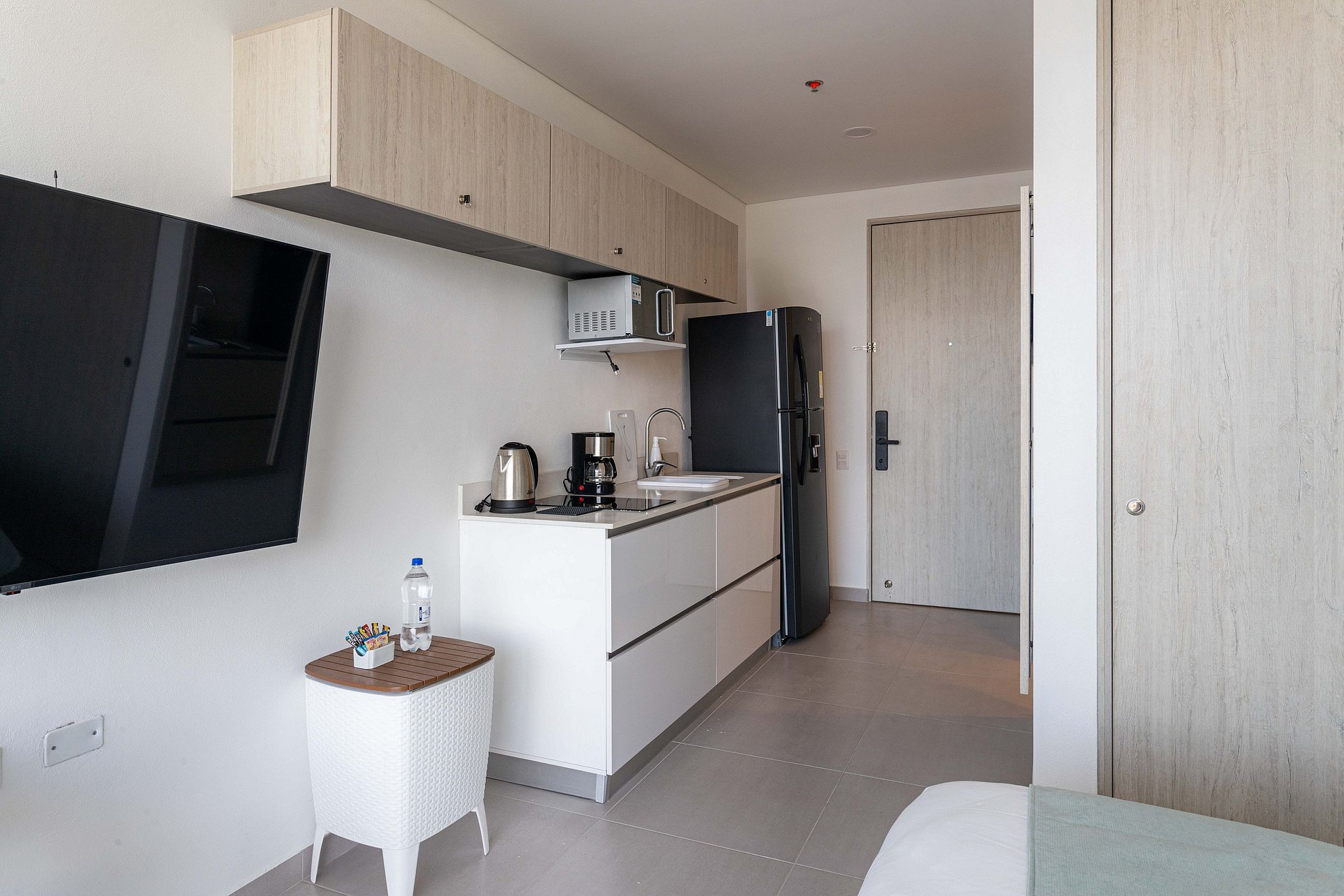 Encuentra con Miethaus la estadia perfecta, este aparta suite cuenta con todo lo necesario para una comoda y tranquila estadia,, si lo deseas puedes cocinar ya que la cocina esta dotada con lo necesario para hacerlo, tiene un sofa cama doble el cual se deja para uso de un tercer huesped con una sabana y una manta, encontraras tambien sillas para llevar a la playa sin ninguna restriccion, esta ubicado en el sector de Bello Horizonte a pocos pasos de las mejores playas de Santa Marta.