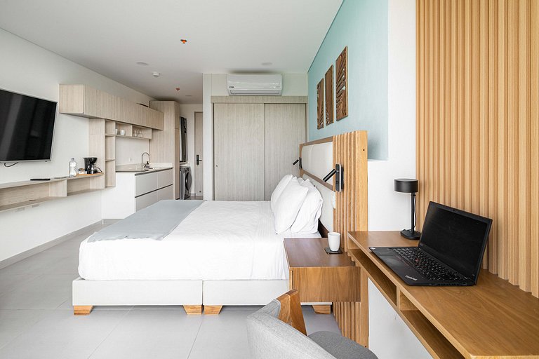 Hermosa y cómoda suite, todo muy limpio y organizado. El edificio lindo y el área de la piscina muy amplia y agradable. Los anfitriones siempre atentos y amables.