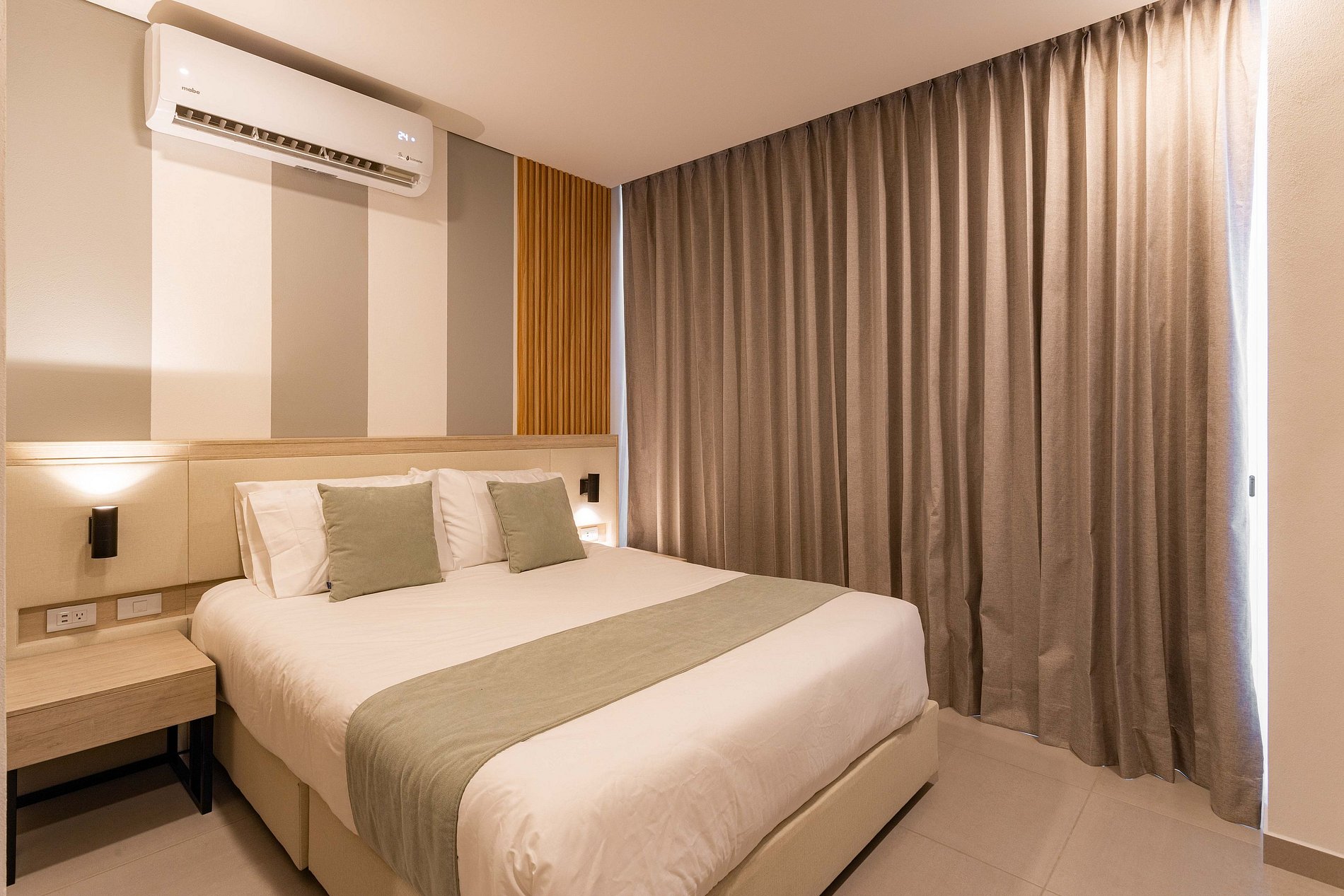 14. El Control del aire acondicionado se habilita entre 20 grados y 30 grados, si quieres bajar el aire a menos de 20 grados lo puedes hacer con incremento durante la estadia de 10 USD por noche