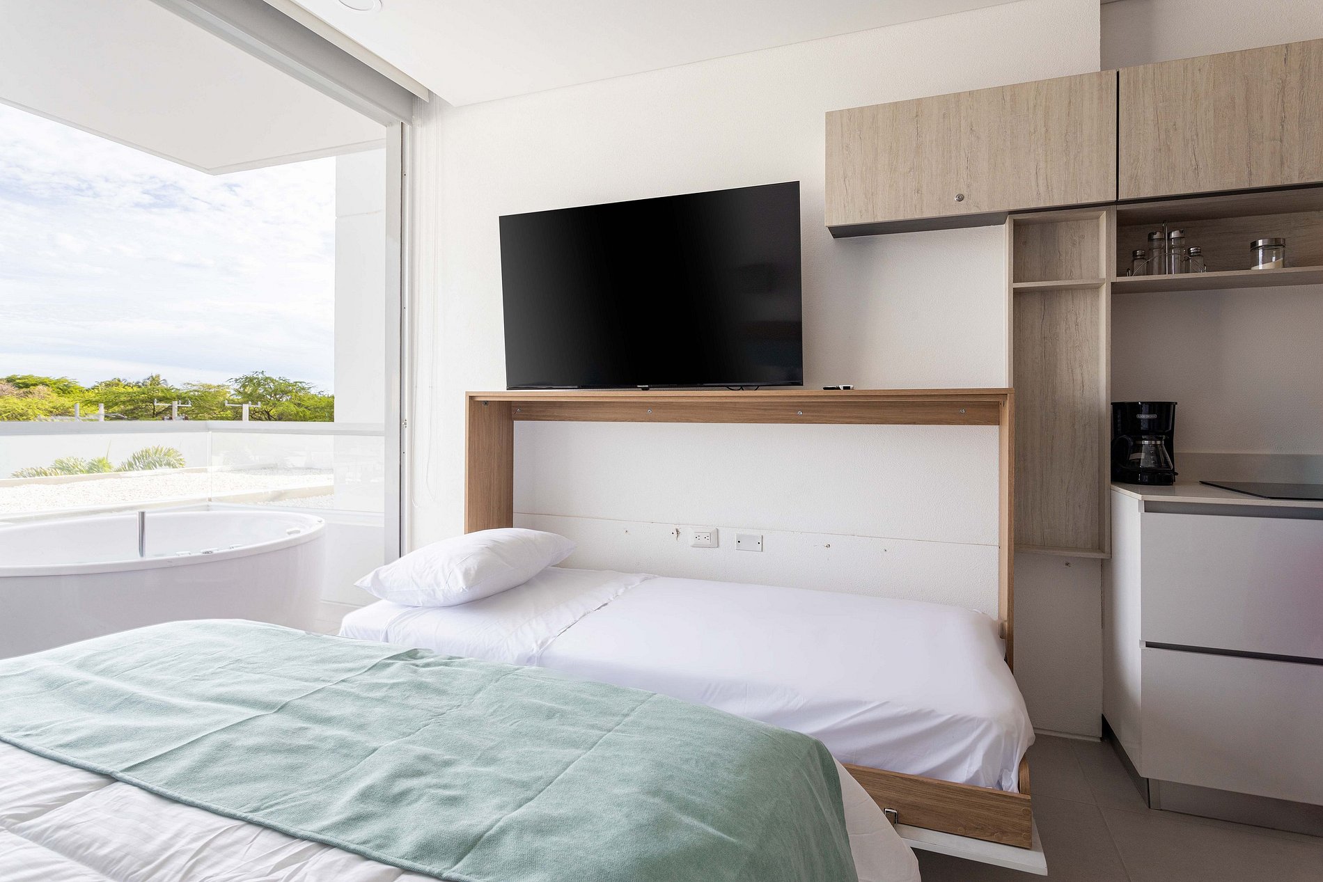 Are you looking for an urban apartment with all the comforts of home and more? Discover our exclusive accommodation that combines modern elegance and diagonal sea views. Imagine ending your day by immersing yourself in a hot tub on your own balcony, with the sea and pools at your feet. Reserve now and transform your trip into a pure serenity experience.