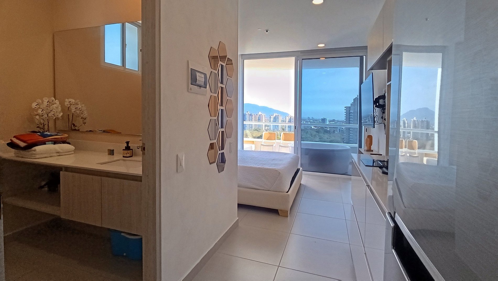 ¿Buscas un apartamento urbano con todas las comodidades del hogar y más? Descubre nuestro exclusivo alojamiento que combina elegancia moderna y vistas diagonales al mar. Imagina terminar tu día sumergiéndote en una bañera de hidromasaje en tu propio balcón, con el mar y las piscinas a tus pies. Reserva ahora y transforma tu viaje en una experiencia de pura serenidad.