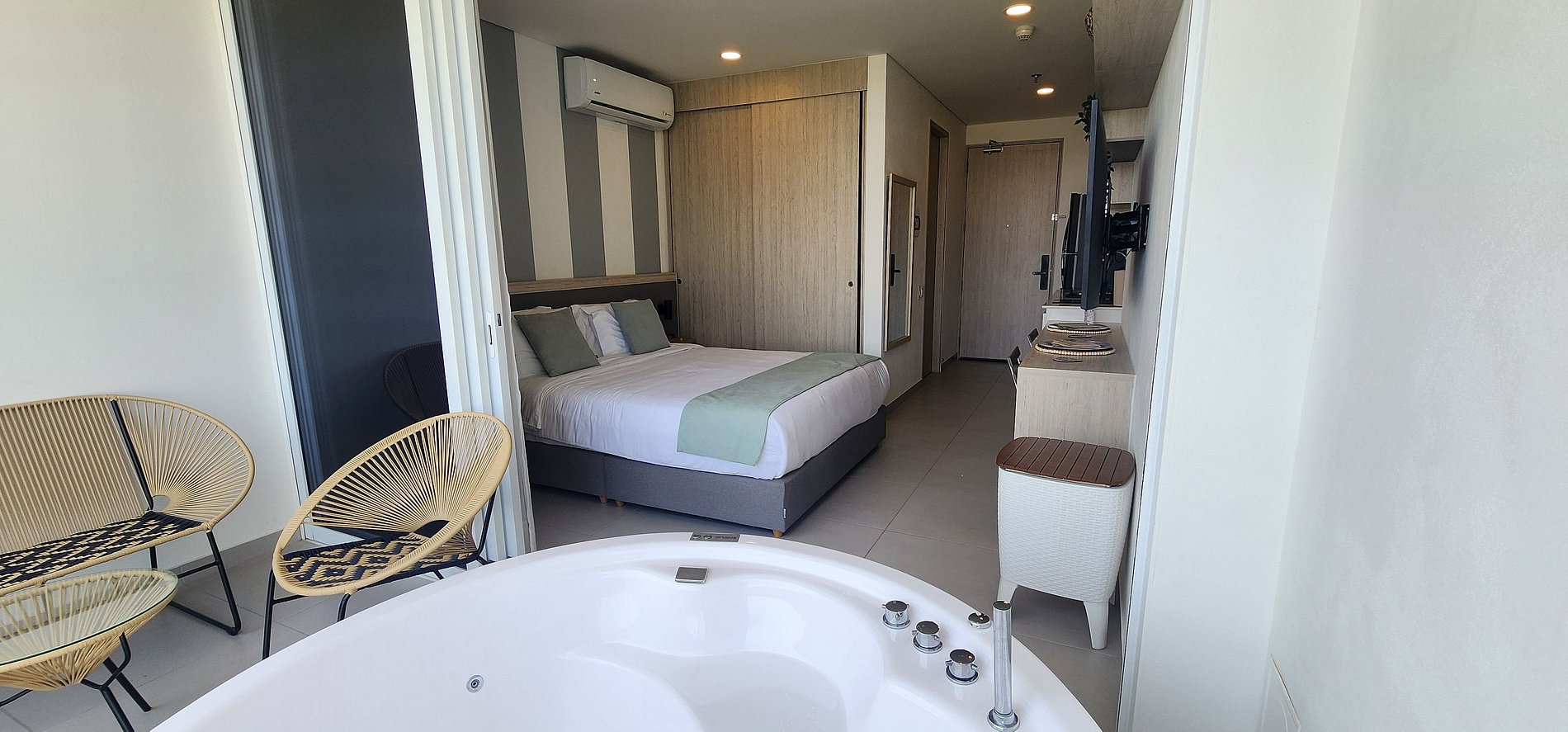 Excelente lugar, todo muy limpio y organizado, en la cocina encuentras básicamente todo para poder cocinar. La atención por parte de Diego, Wendy y Miethaus fue completa y estuvieron atentos a cada momento. El hotel se encuentra a 5 minutos caminando a la playa. La cama y em jacuzzi fue lo mejor de todo. Muy recomendado.