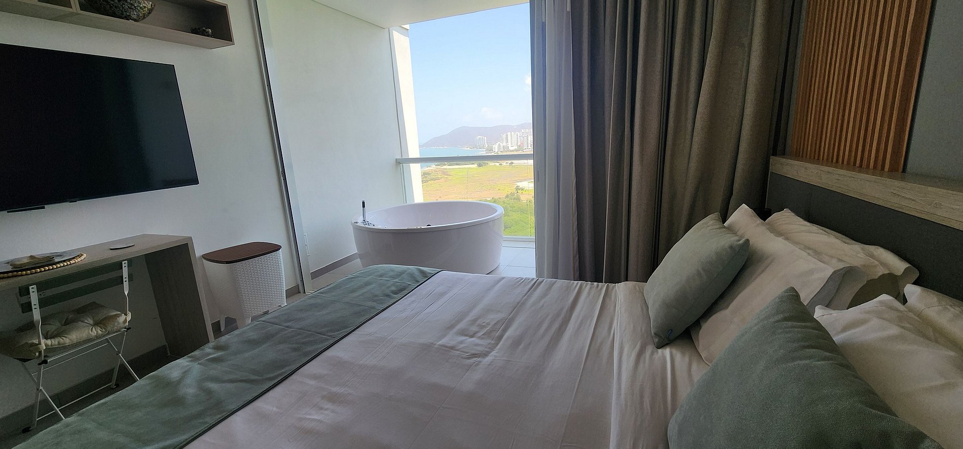 Relax in this unique and tranquil getaway, enjoy the sun and the best beaches of Santa Marta, beautiful views accompanied by a fresh and elegant suite. Porto Horizonte Condo Hotel is located in the exclusive sector of Bello Horizonte, where you’ll find the best beaches in Santa Marta. It’s a quiet and friendly place for an unforgettable vacation. Just a few meters away, you’ll find resort-style hotels like the Marriott, where you can enjoy restaurants and the Irotama.
