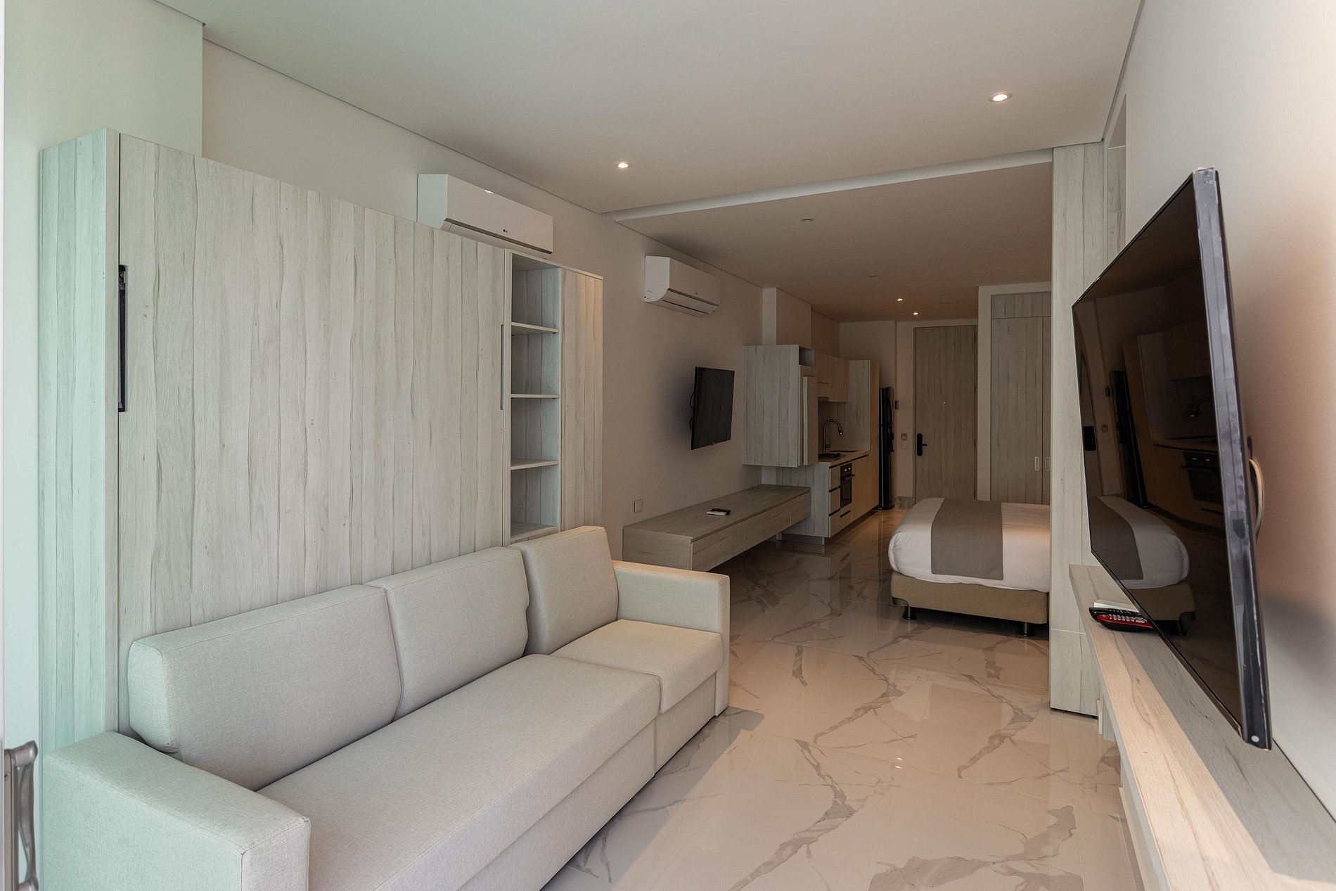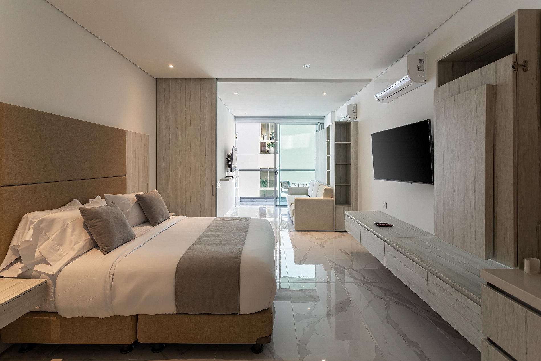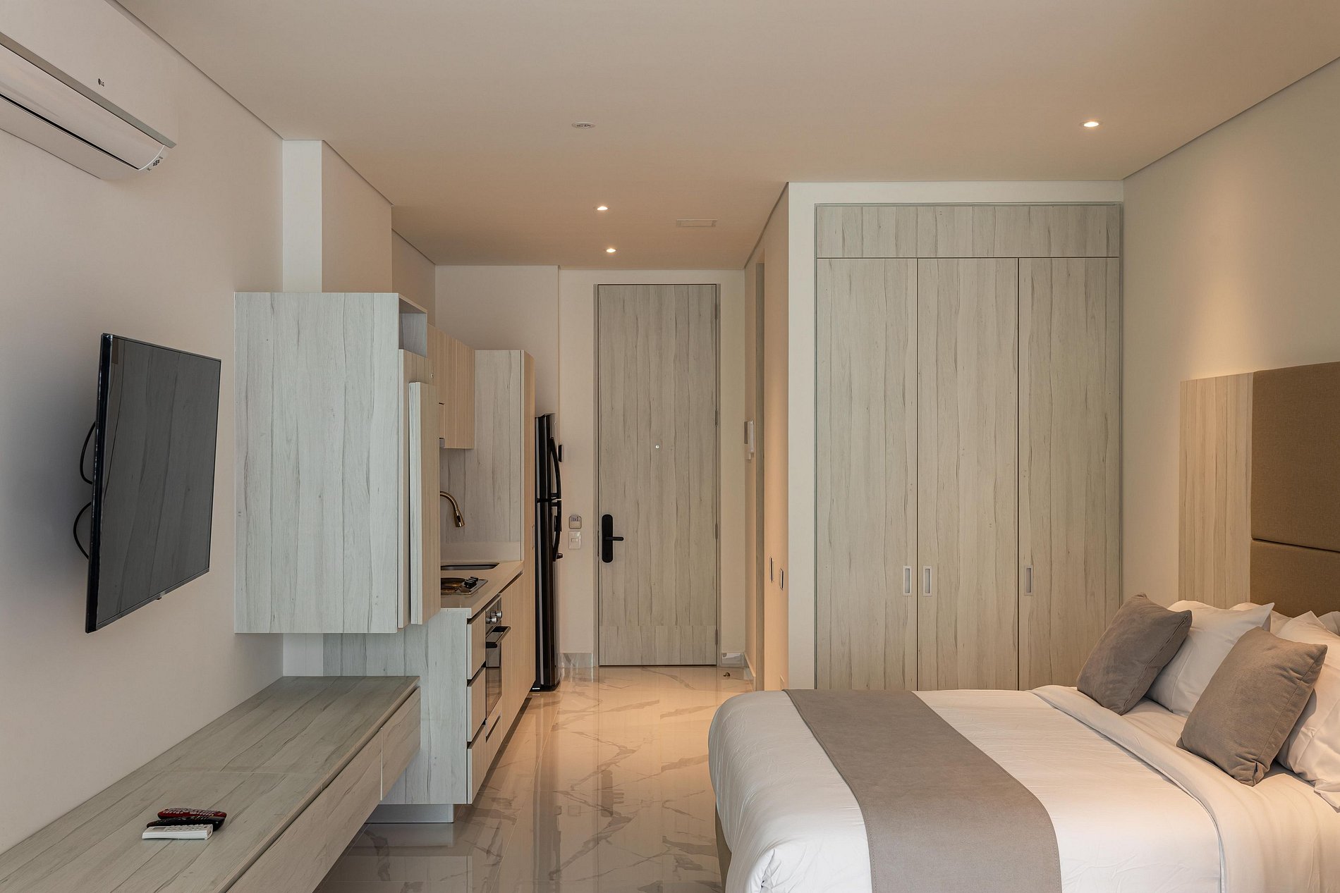 Los apartamentos de Sui Lofts son amplios y estan completamente dotados, cuenta con piscina co-working - sala de juntas- gimnasio y jacuzzi en el ultimo piso del edificio