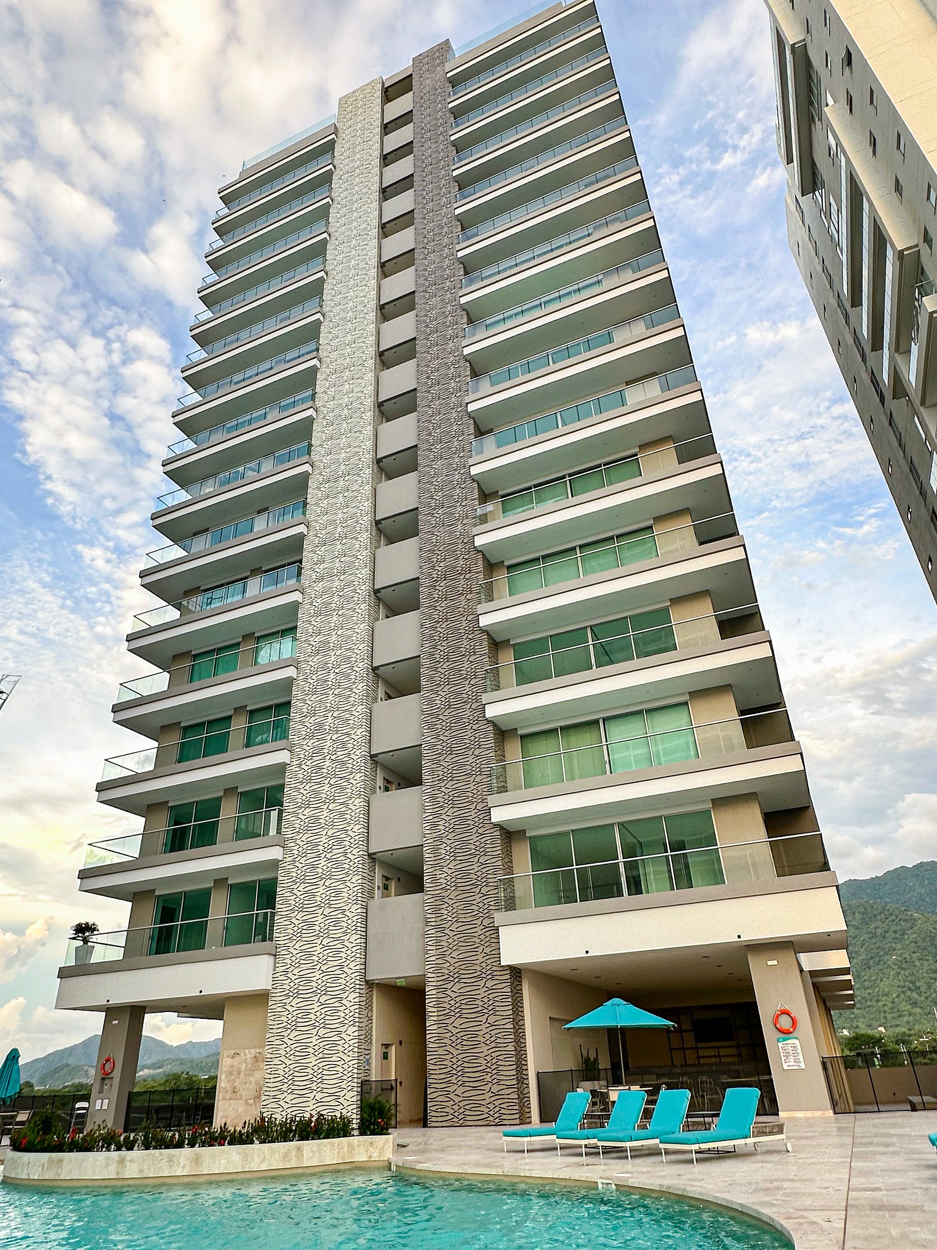 Disfruta de una estancia inolvidable en nuestro loft con dos espacios dotado con dos camas, ubicada en el piso 15 de un moderno edificio recientemente construido en la exclusiva zona de Bello Horizonte, Santa Marta.