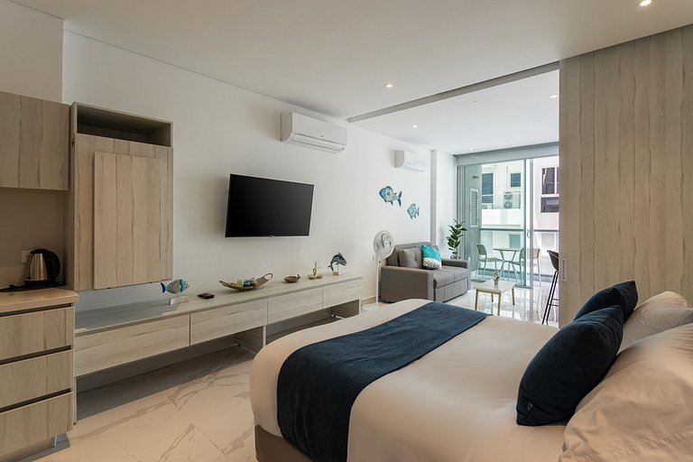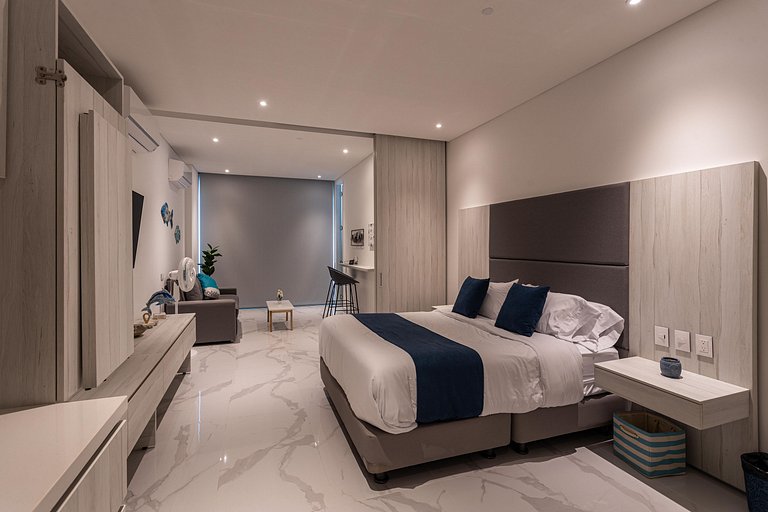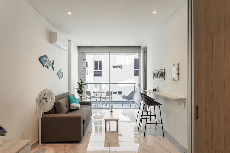 Disfruta de una estancia inolvidable en nuestro loft ubicado en el piso 12 de un moderno edificio recientemente construido en la exclusiva zona de Pozos Coloradose, Santa Marta.
