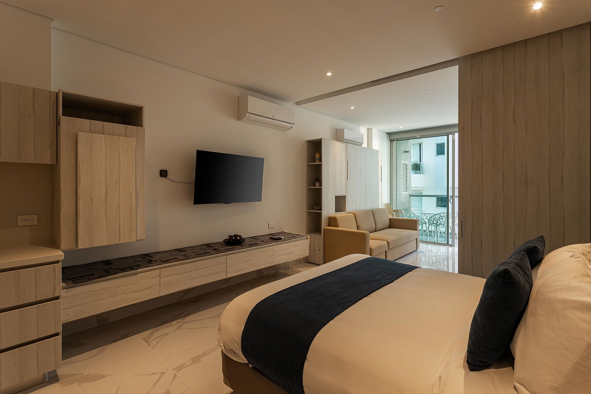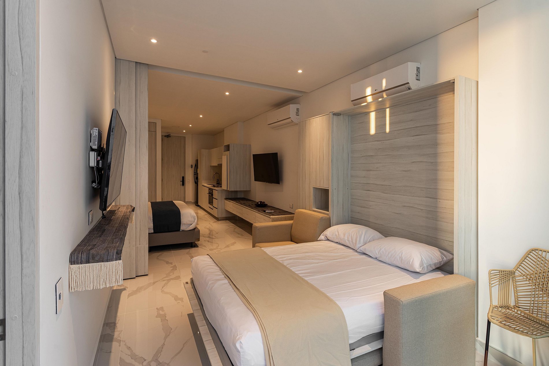 Los apartamentos de Sui Lofts son amplios y estan completamente dotados, cuenta con piscina co-working - sala de juntas- gimnasio y jacuzzi en el ultimo piso del edificio