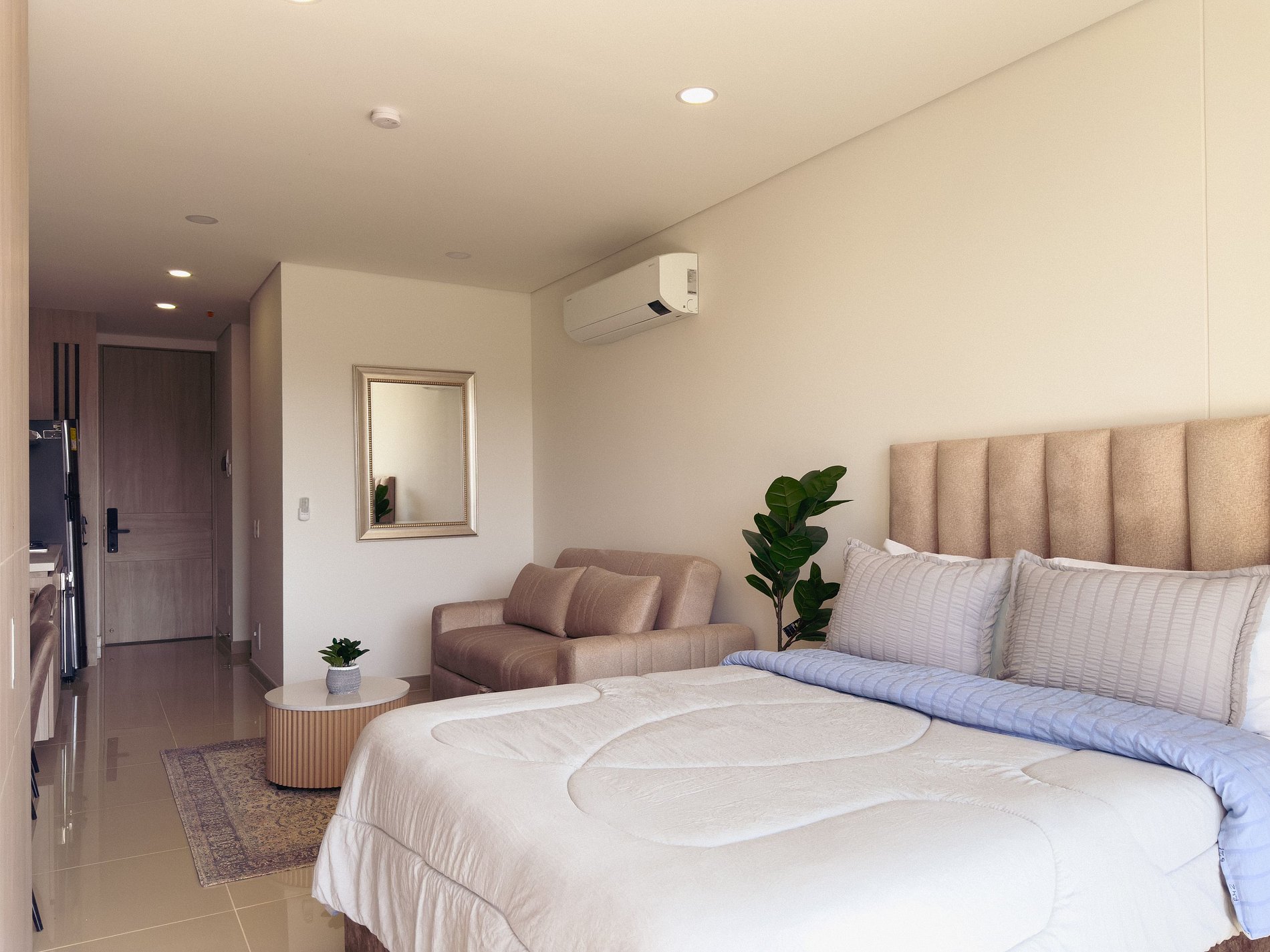 Desde que cruzas la puerta, el ambiente cambia. La luz natural, el silencio del entorno y la vista abierta a las montañas crean una sensación inmediata de calma. Este apartamento fue pensado para quienes valoran el descanso, el orden y los espacios bien diseñados, sin renunciar a una ubicación estratégica en Santa Marta.