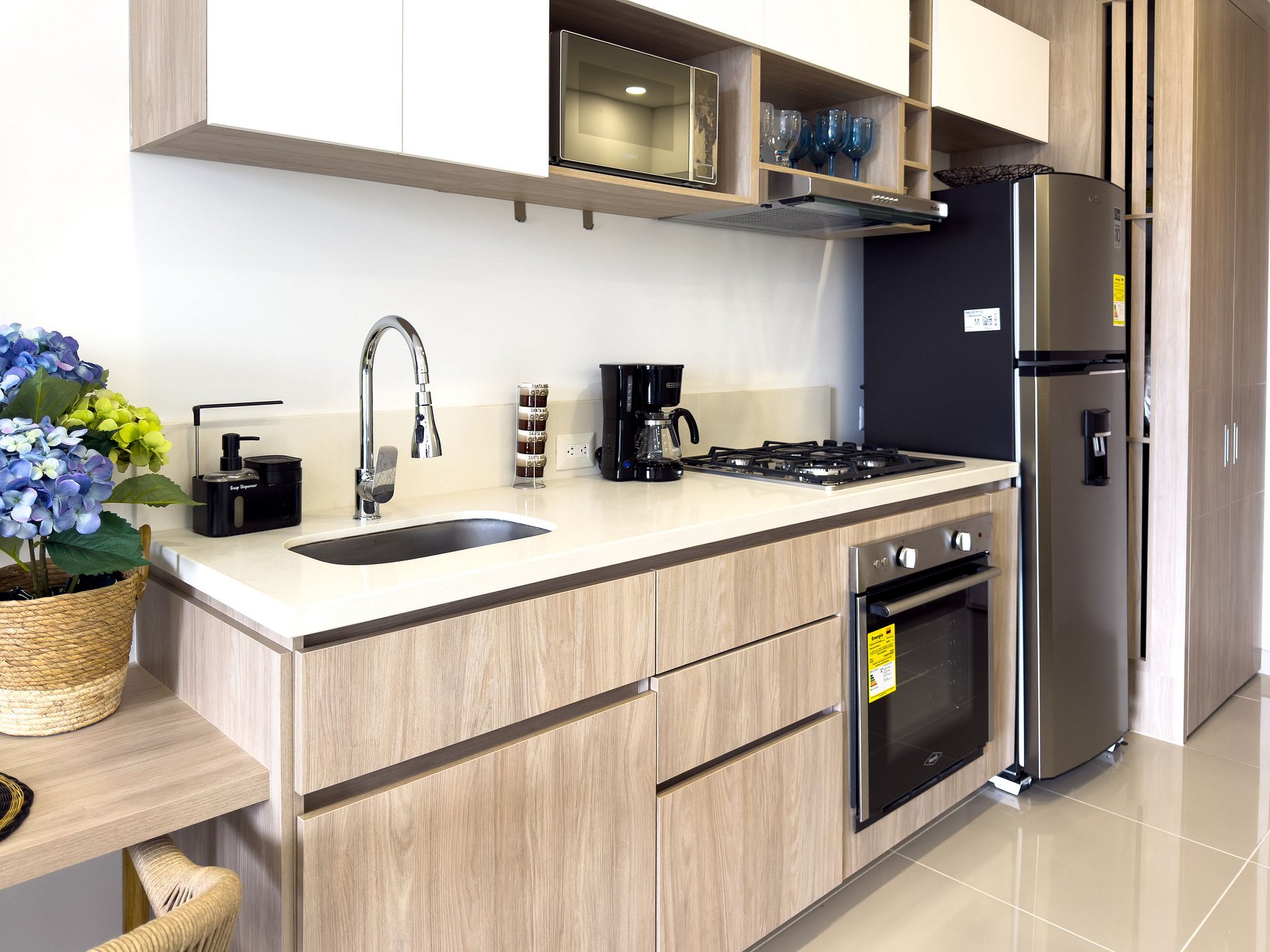 Cocina lista para estadías cortas o prolongadas