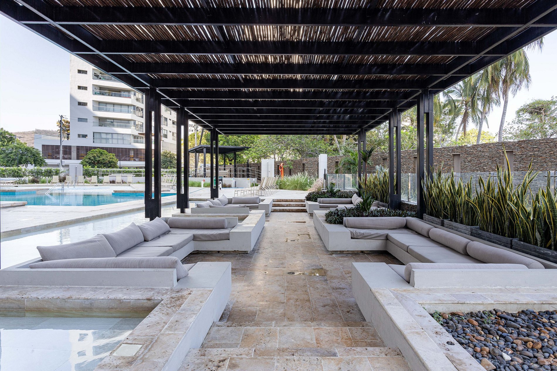 El condómino esta dotado de espectaculares áreas comunes donde podrán pasar unas mágicas vacaciones, se tiene acceso directo a playa. Su ubicación es muy central ya que esta a 5 minutos del rodadero, el cual es uno de los mas visitados por turistas, En este pueden encontrar Restaurantes, bares, muy buen comercio y el CC Arrecife, además se encuentra el puerto de salida. El aeropuerto se encuentra a 10 min, 15 min al centro histórico.