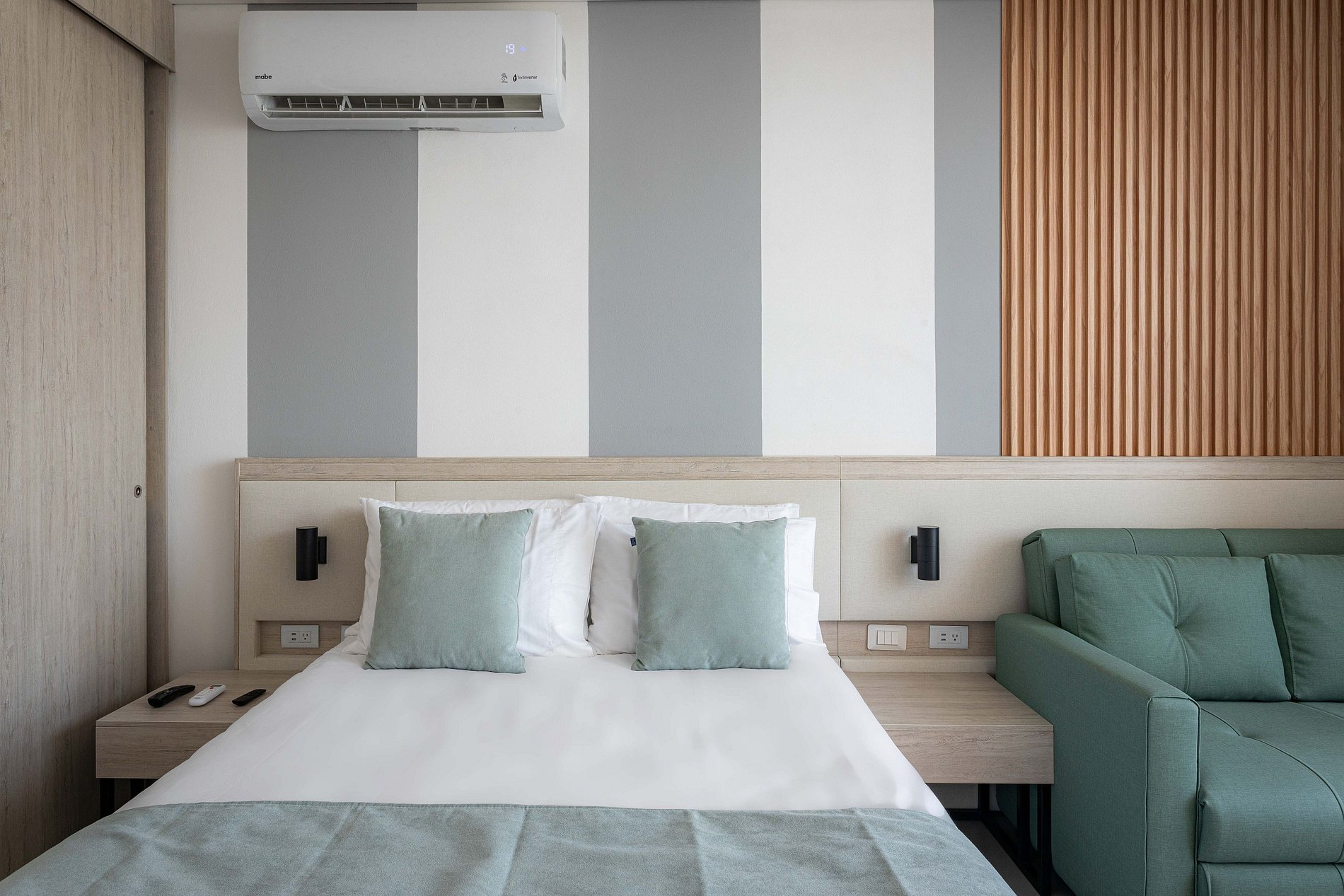 16. El Control del aire acondicionado se habilita entre 20 grados y 30 grados, si quieres bajar el aire a menos de 20 grados lo puedes hacer con incremento durante la estadia de 10 USD por noche.