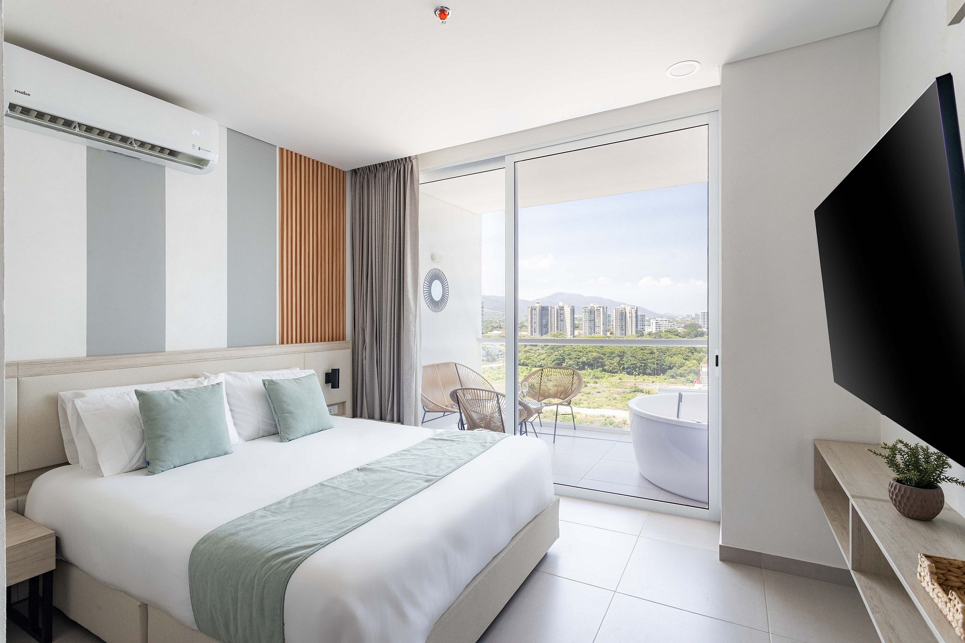 ¿Buscas un apartamento urbano con todas las comodidades del hogar y más? Descubre nuestro exclusivo alojamiento que combina elegancia moderna y vistas diagonales al mar. Imagina terminar tu día sumergiéndote en una bañera de hidromasaje en tu propio balcón, con el mar y las piscinas a tus pies. Reserva ahora y transforma tú viaje en una experiencia de pura serenidad.