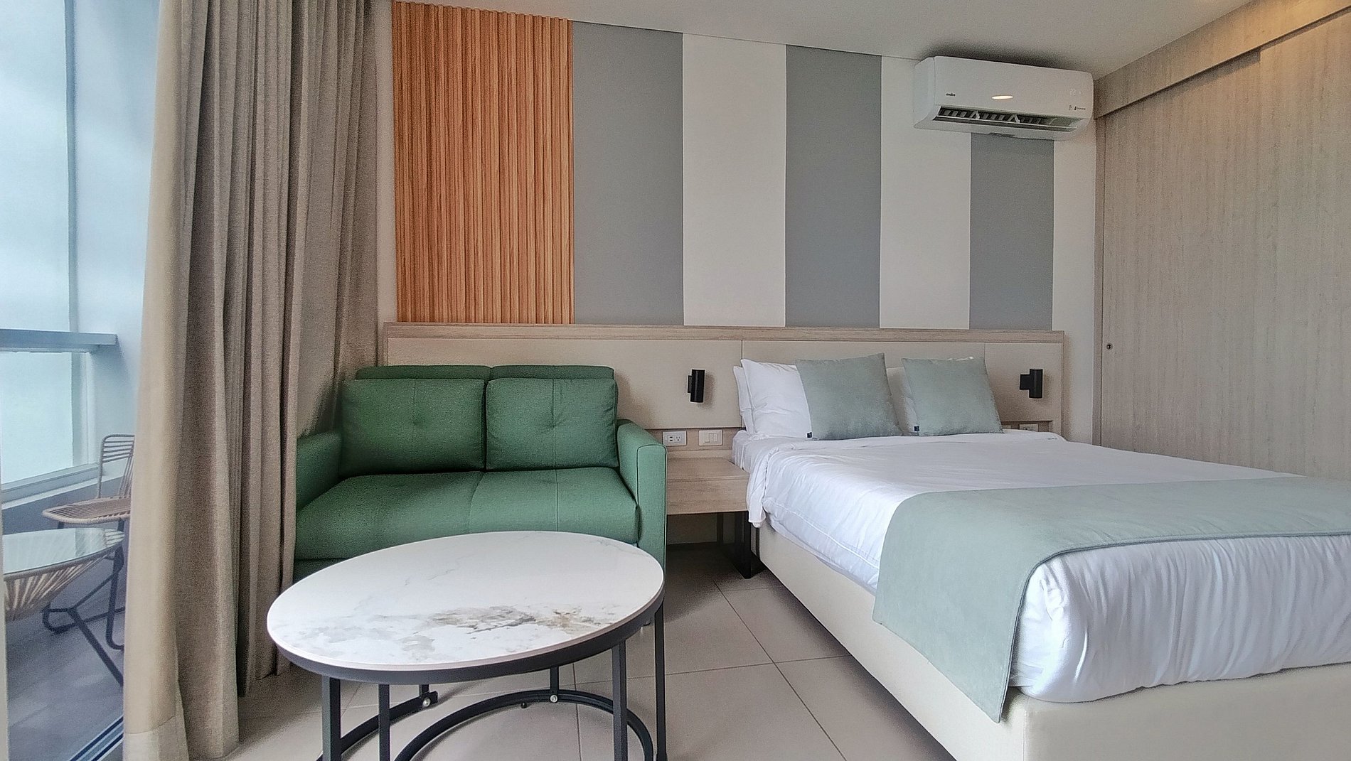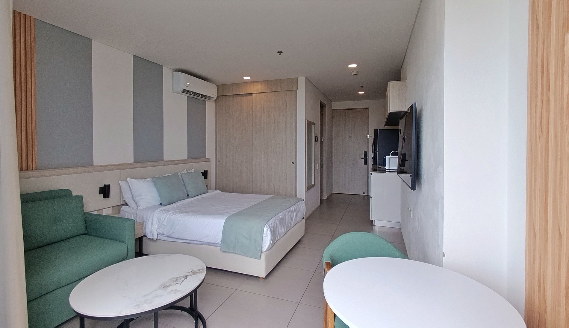 16. El Control del aire acondicionado se habilita entre 20 grados y 30 grados, si quieres bajar el aire a menos de 20 grados lo puedes hacer con incremento durante la estadia de 10 USD por noche.