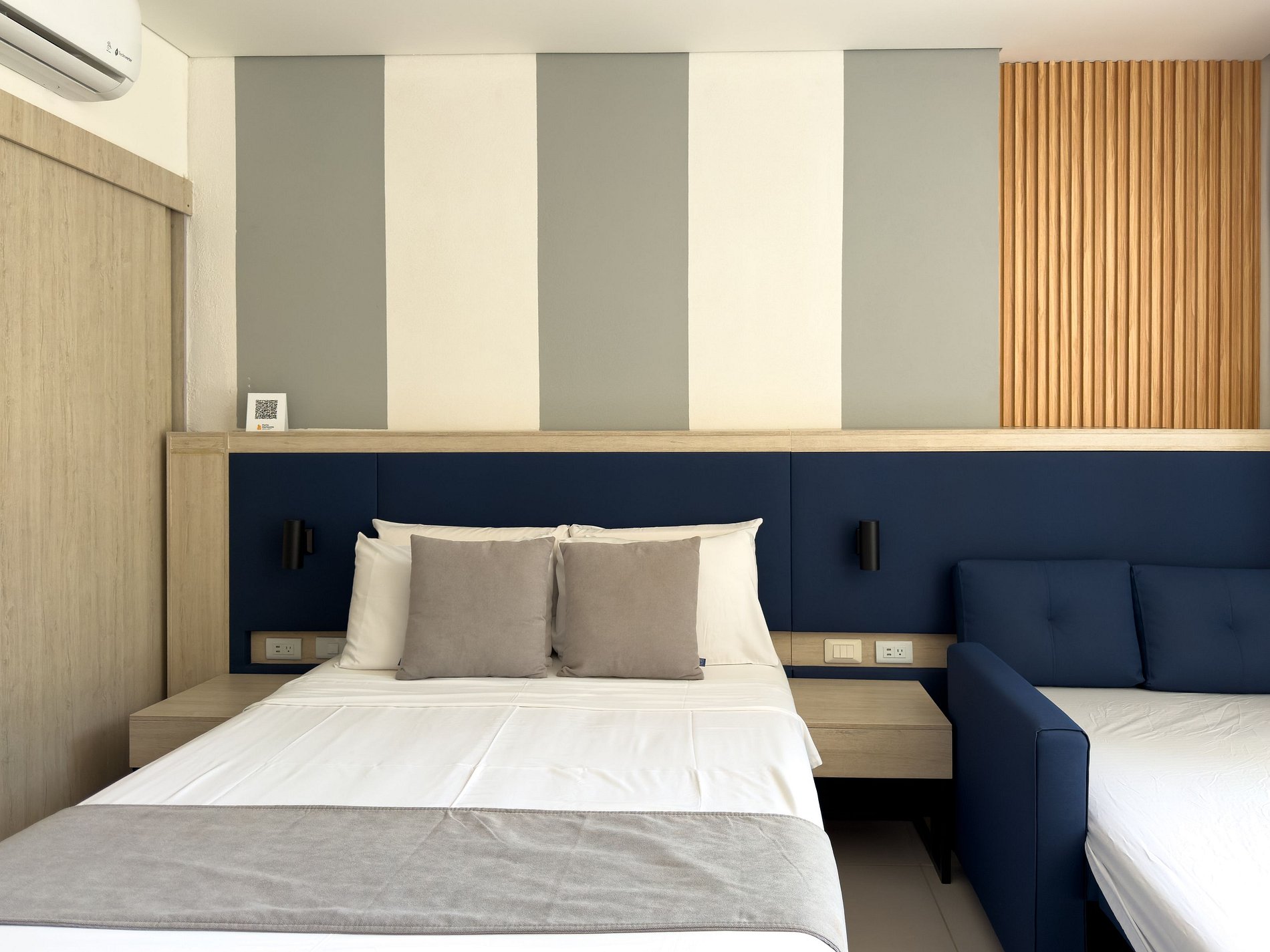 Cada detalle del apartamento está diseñado para que te sientas como en casa: cama queen confortable, sofá cama amplio, aire acondicionado, WiFi de buena velocidad, cocina equipada y un espacio funcional ideal tanto para estancias cortas como largas. El edificio ofrece seguridad 24/7 y acceso controlado, brindando tranquilidad absoluta para familias, parejas y viajeros de negocios.