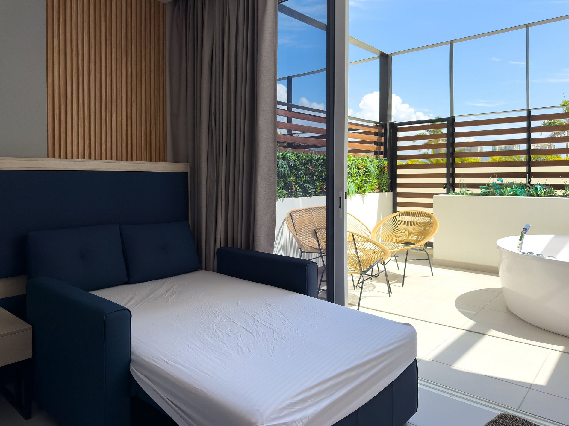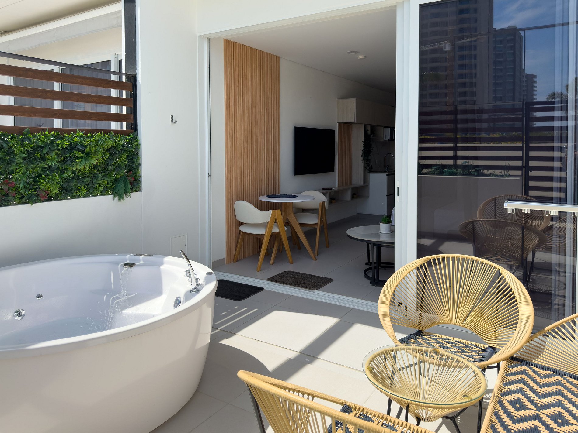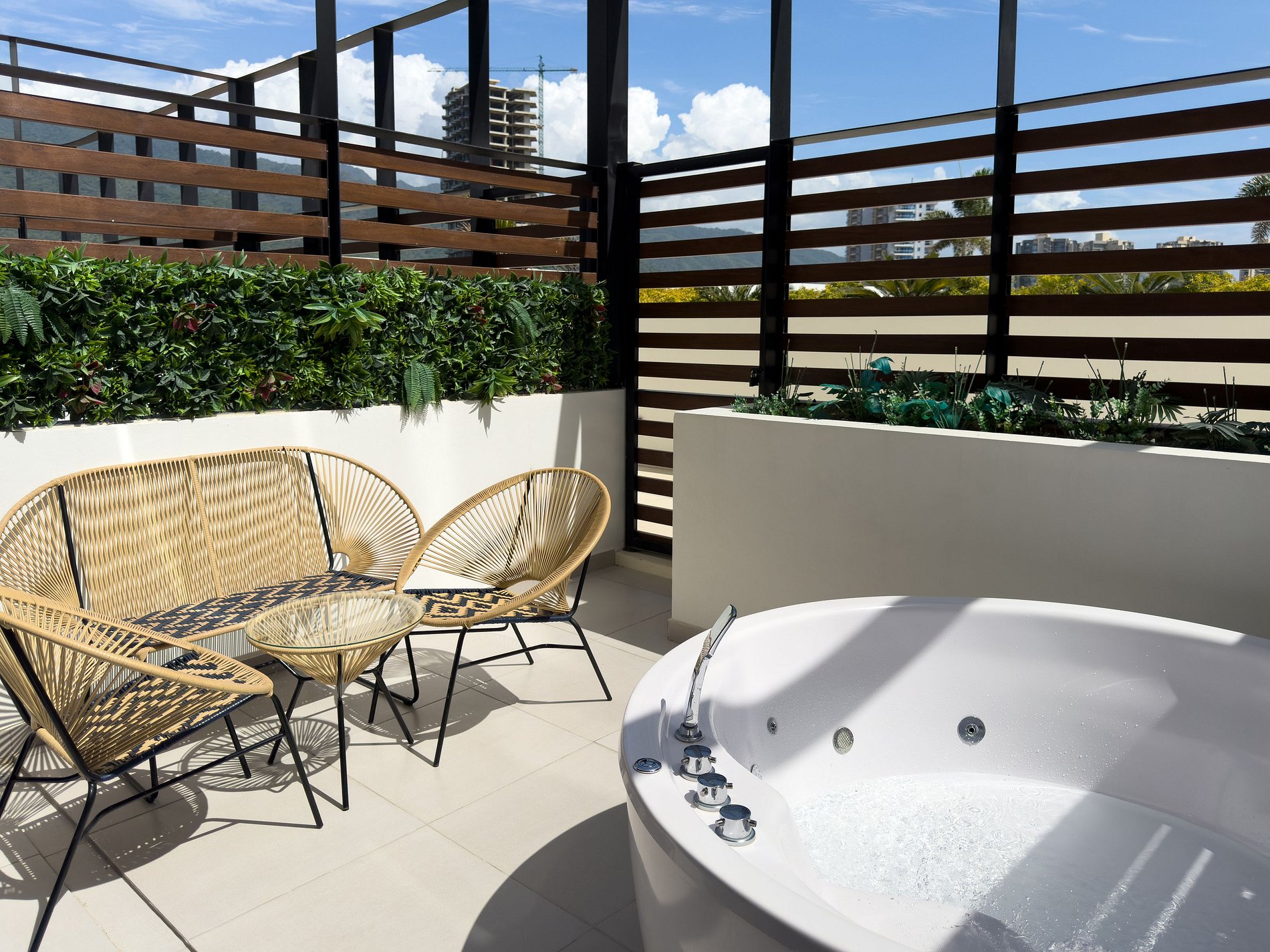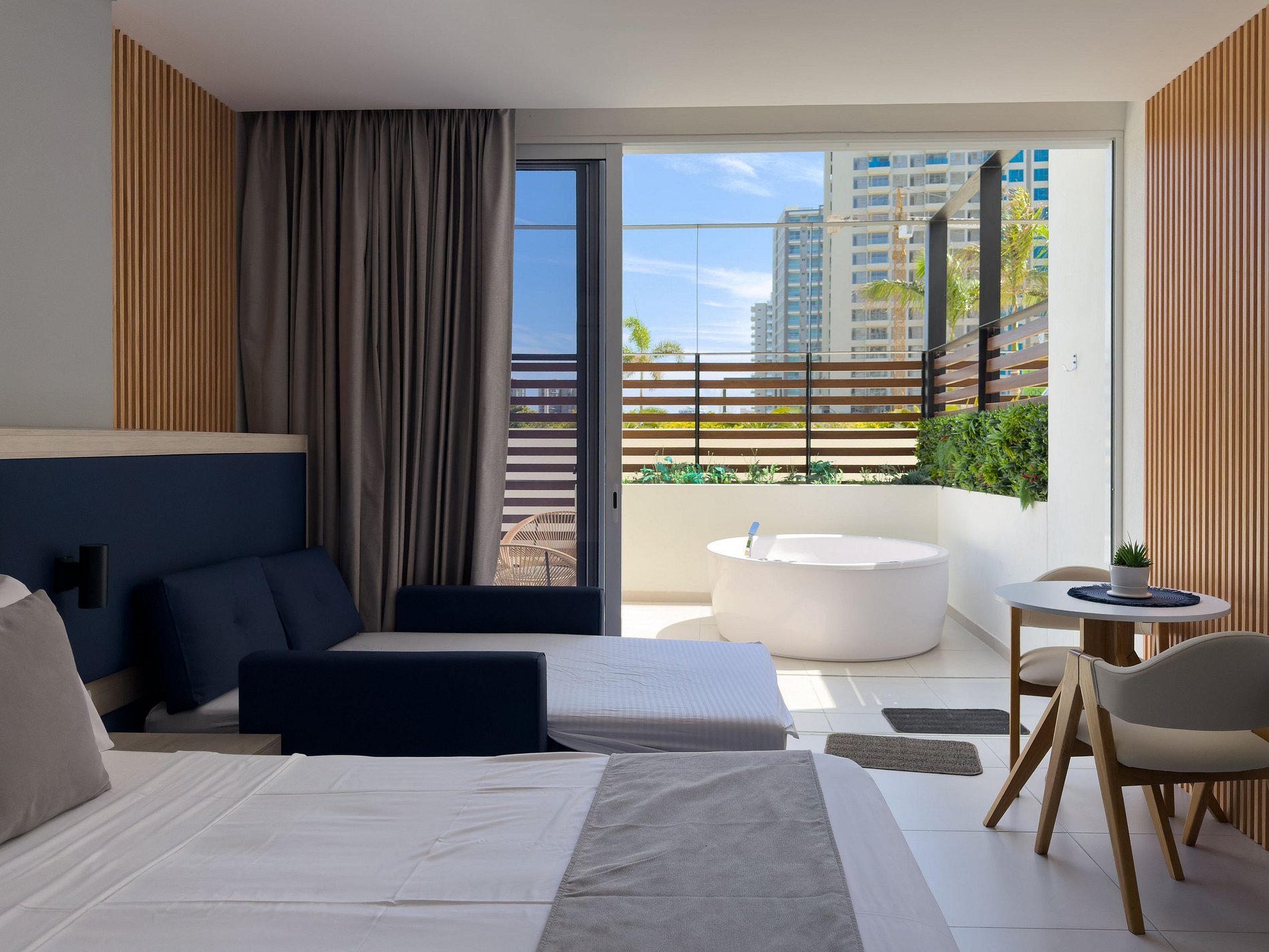 Encuentra con Miethaus la estadia perfecta, este aparta suite con amplia terraza brinda tranquilidad y confort para una estadia con todo a la mano, cuenta con cocina dotada, cama doble, sofa cama Tv de 55" una amplia terraza acompañada de un elegante Jacuzzi, tiene salida por la parte de atras directo a las piscinas del edificio ideal para tomar el sol o pasar en familia.