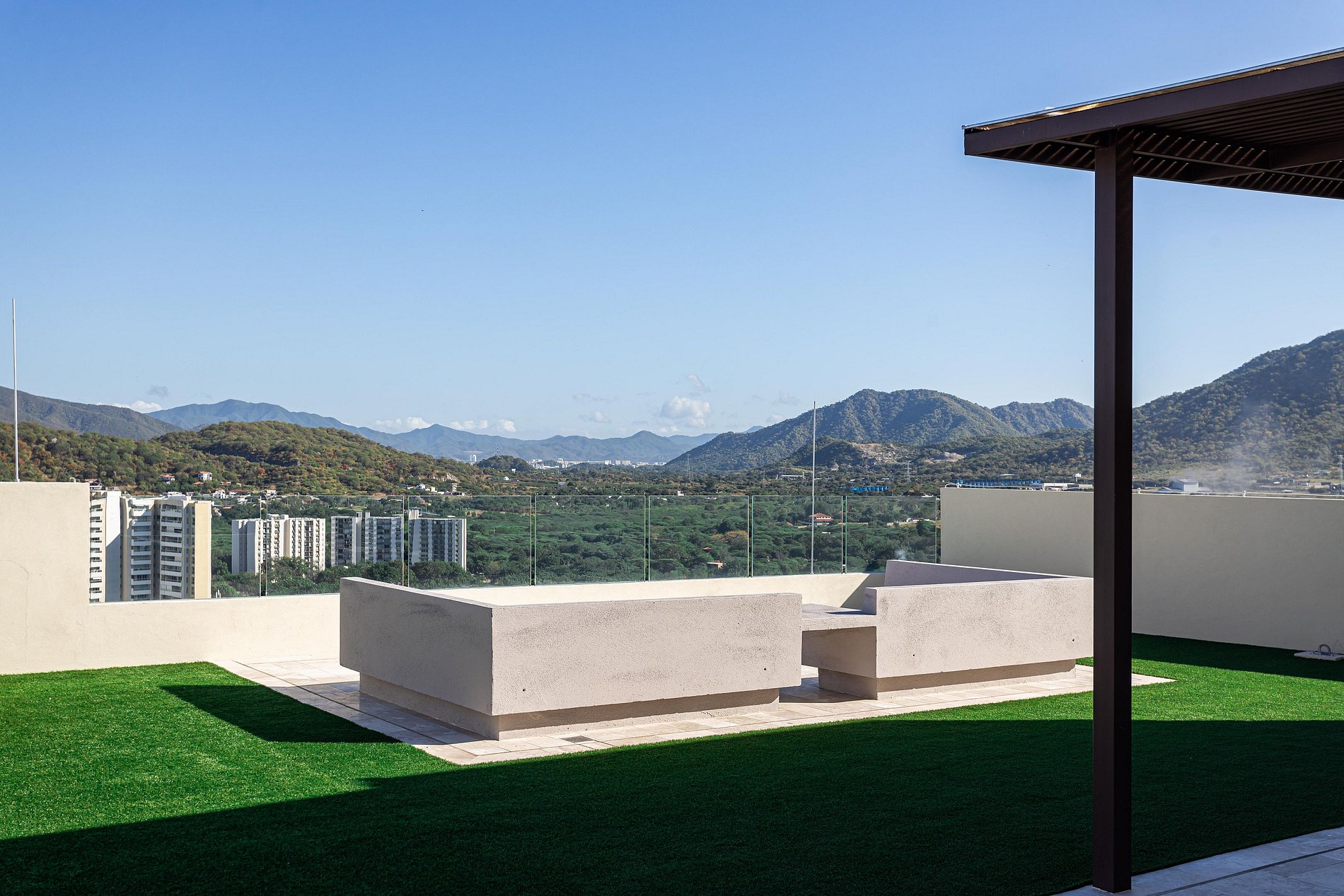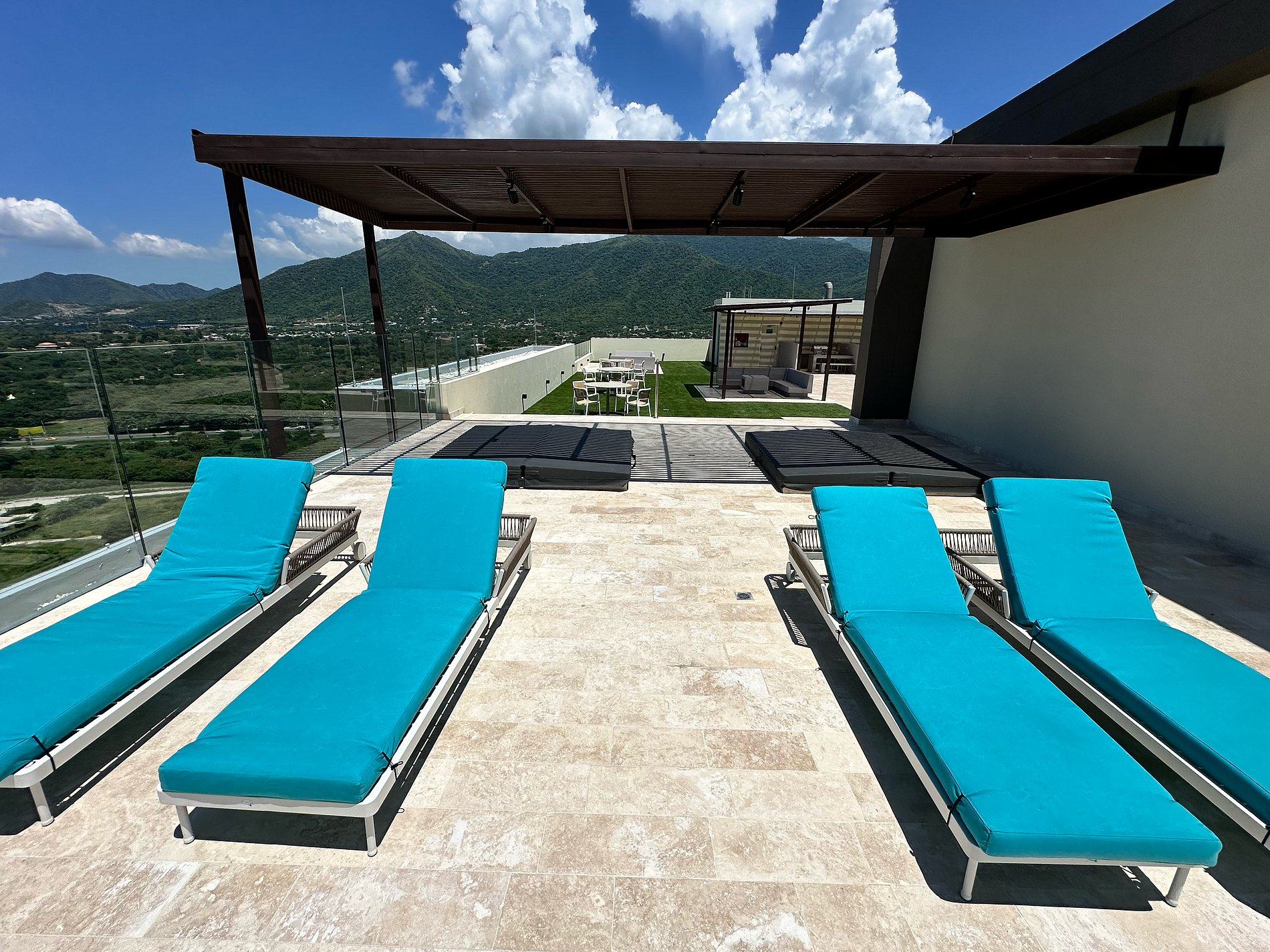 El edificio ofrece área de coworking, sala de juntas, lavandería, gimnasio, piscina para adultos y niños, zona de BBQ y jacuzzis en la terraza con vista panorámica.