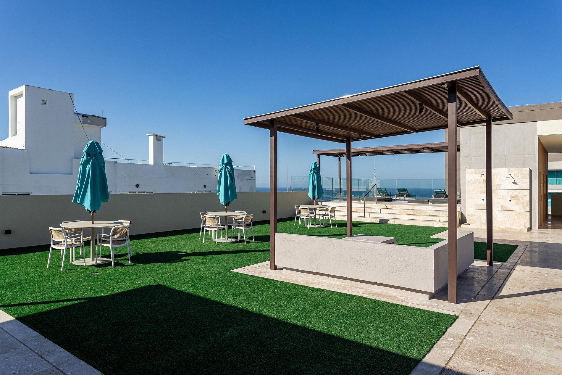 Jacuzzis y zona de asados en la terraza.